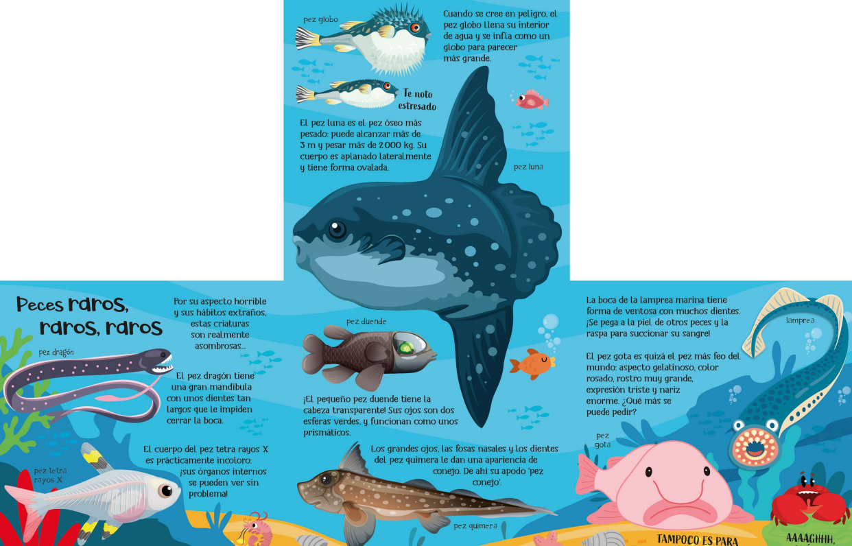 ¿Quieres saber qué especies viven en nuestros océanos? ¿Y qué animales habitan en los arrecifes o en las profundidades del mar? ¿Quieres conocer a los tiburones más impresionantes o los peces más raros, o los récords más increíbles de la vida marina? ¡Aquí aprenderás todo esto y mucho más a la vez que descubres nuevas escenas en cada página!