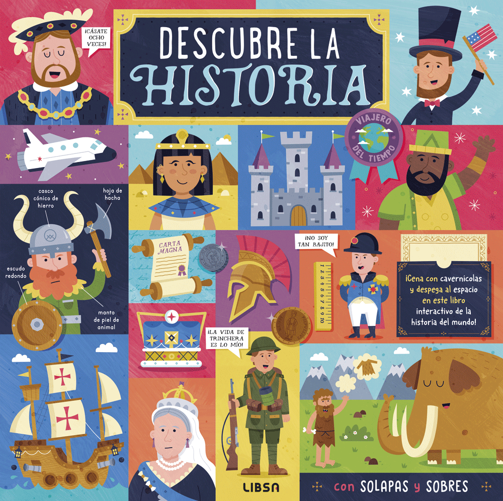 ¡Haz un viaje al pasado con este libro interactivo de historia y descubre montones de recuerdos por el camino! Cada página tiene una sorpresa: desplegables, solapas, bolsillos con tarjetas, sobres con postales… Mil y una curiosidades con un texto divertidísimo y fantásticamente ilustrado. ¡Imposible no aprender!