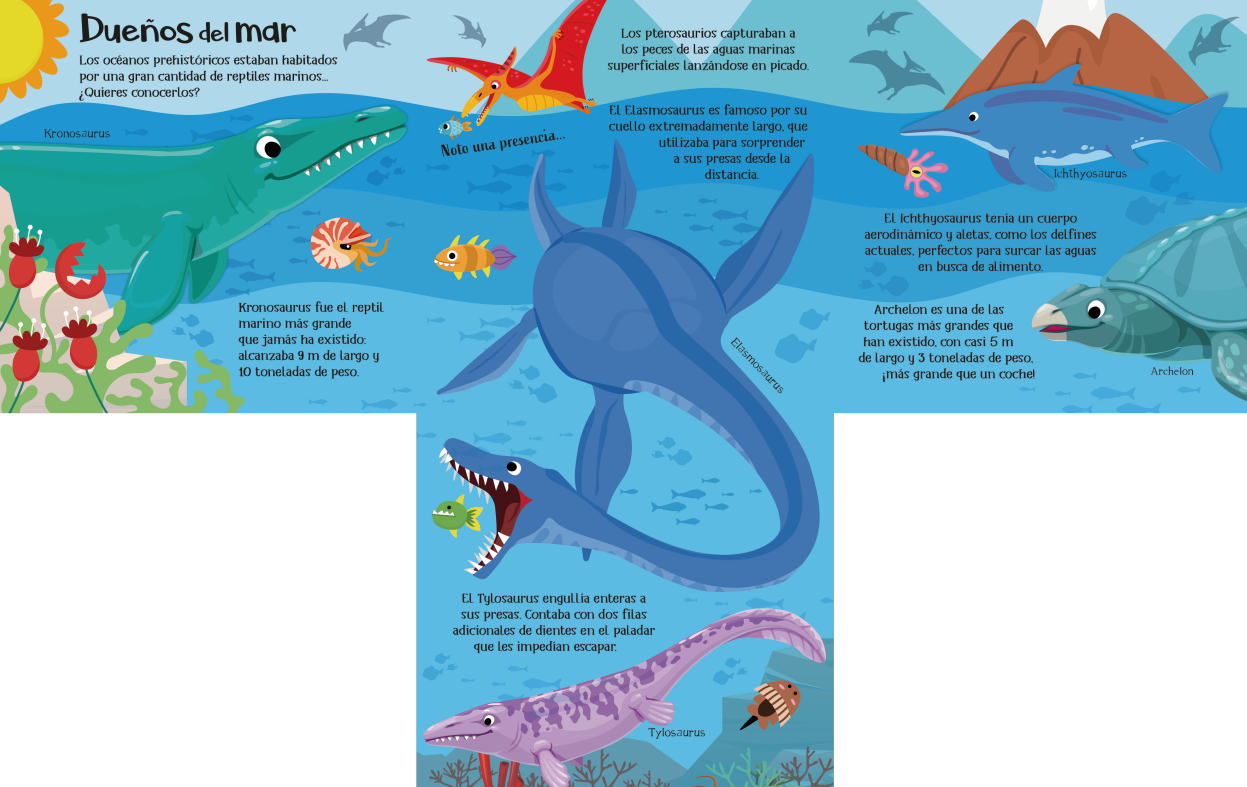 ¿Quieres saber cómo pasaban su tiempo los dinosaurios? ¿Qué comían, cómo se defendían de sus enemigos o cuáles eran los que tenían el aspecto más extraño? ¿Te has preguntado alguna vez qué se hace cuando se encuentra un fósil? ¡Aquí aprenderás todo esto y mucho más a la vez que descubres nuevas escenas en cada página!