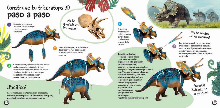 ¡Bienvenido a la era de los dinosasurios! Sumérgete en el mundo de estas increíbles criaturas montando los 6 modelos y reúnete con tus dinos favoritos: ¡te están esperando para jugar contigo, el Diplodocus, el Spinosaurus, el Parasaurolophus, el Veciloraptor, el Tiranosaurio y el Triceratops.
